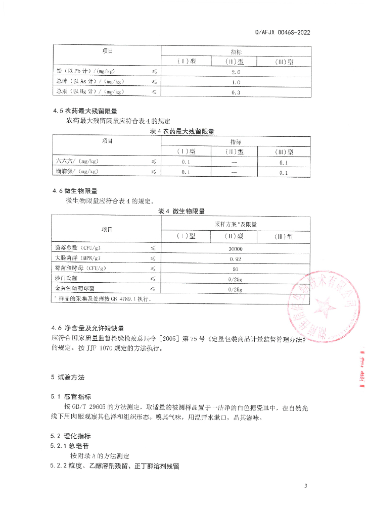 Q/AFJX 0046S-2022 保健食品原料 三七提取物