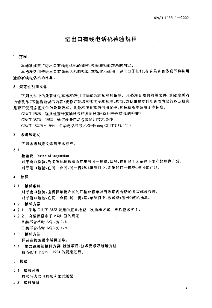 SN/T 1163.1-2002 进出口有线电话机检验规程