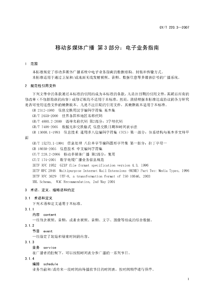 GY/T 220.3-2007 移动多媒体广播 第3部分:电子业务指南