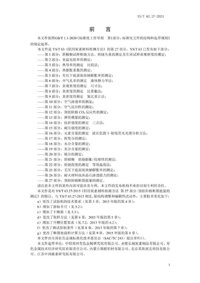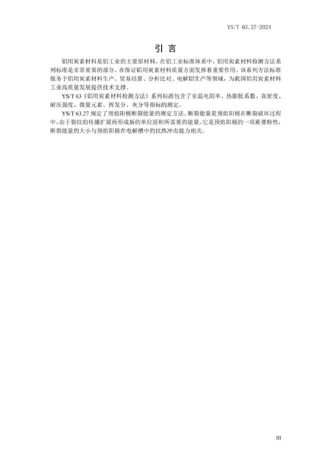 YS/T 63.27-2024 铝用炭素材料检测方法 第27部分:预焙阳极断裂能量的测定