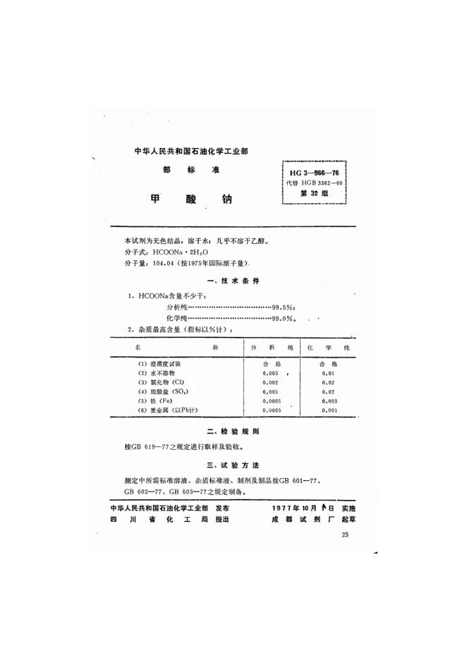 HG 3-966-1976 化学试剂 甲酸钠