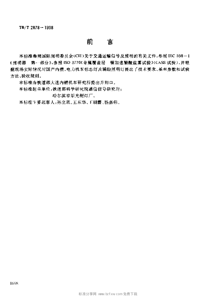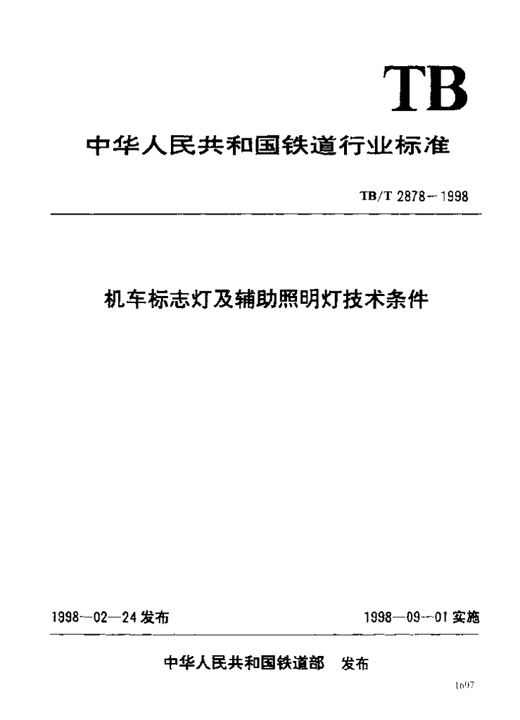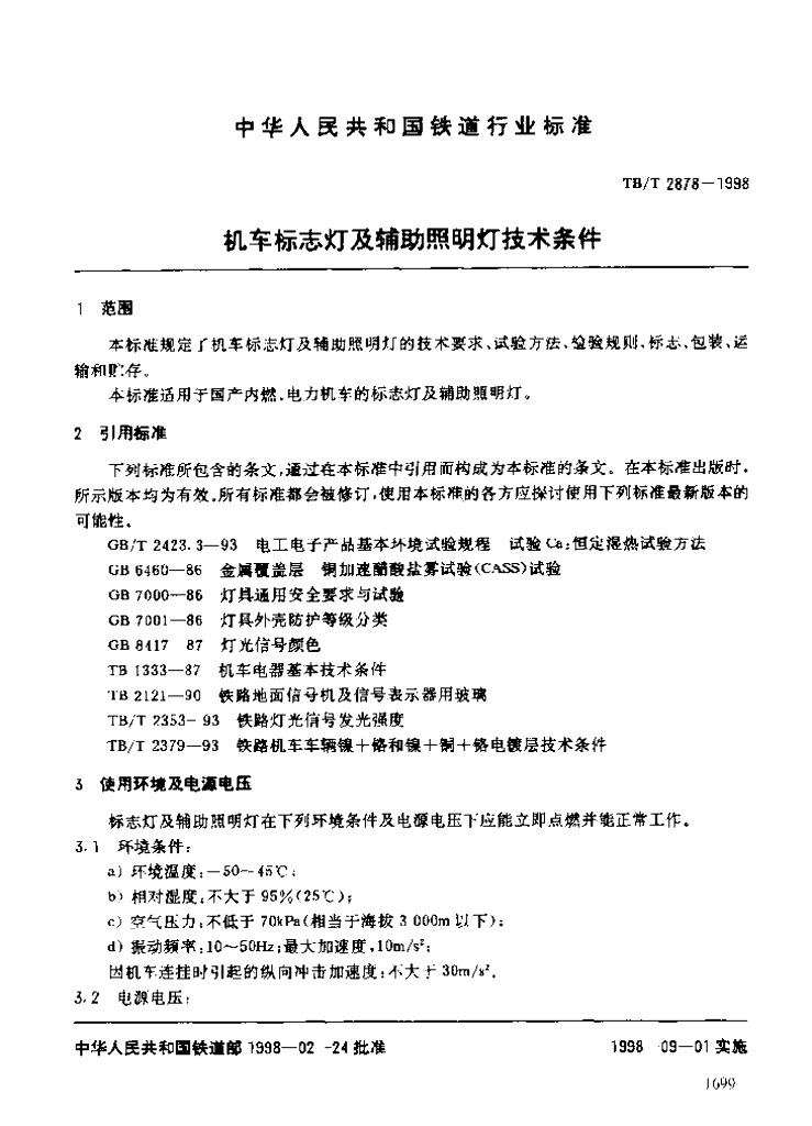 TB/T 2878-1998 机车标志灯及辅助照明灯技术条件