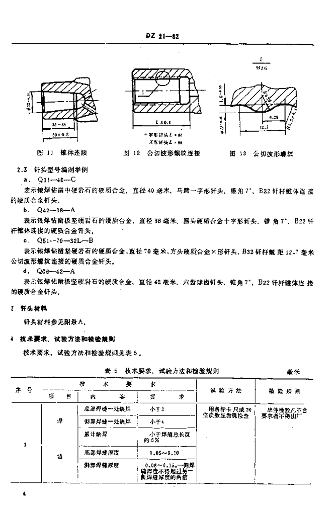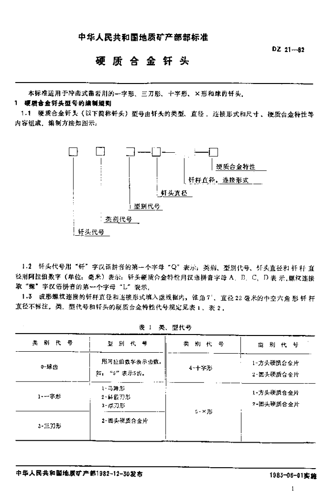 DZ 21-1982 硬质合金钎头