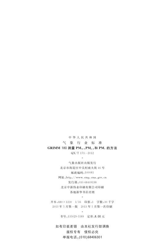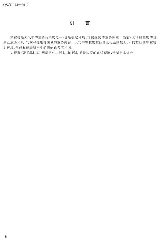 QX/T 173-2012 GRIMM 180测量PM10、PM2.5和PM1的方法