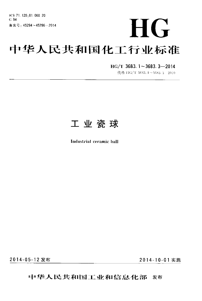HG/T 3683.1-2014 工业瓷球 惰性瓷球