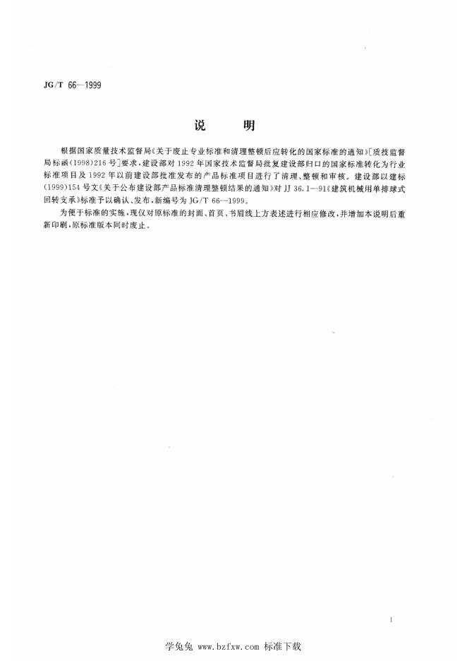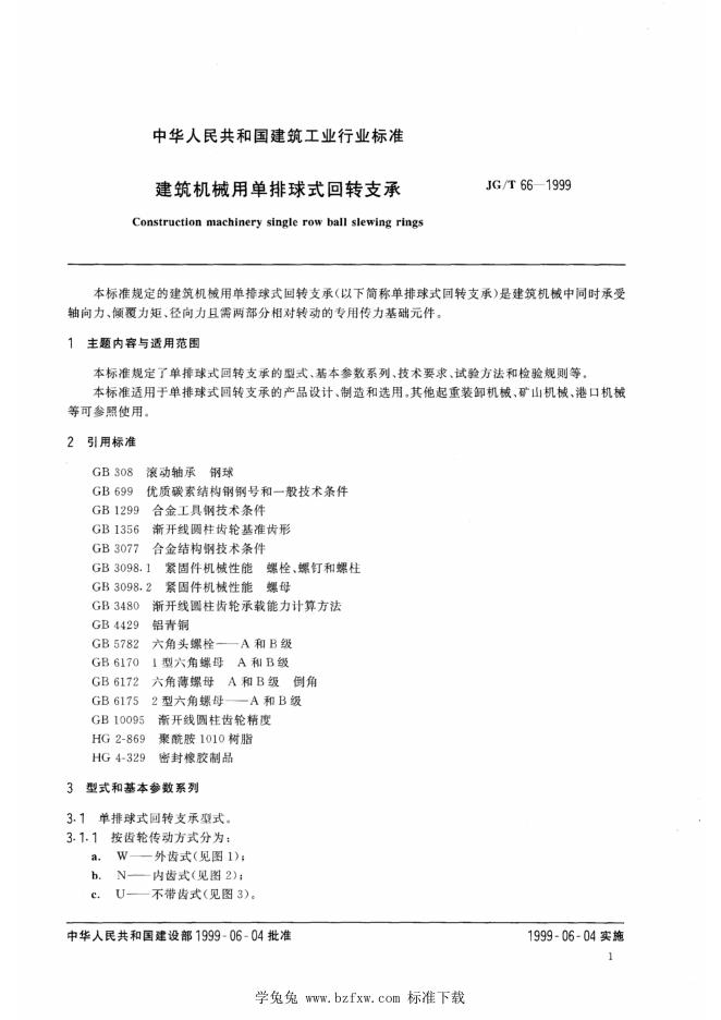 JG/T 66-1999 建筑机械用单排球式回转支承