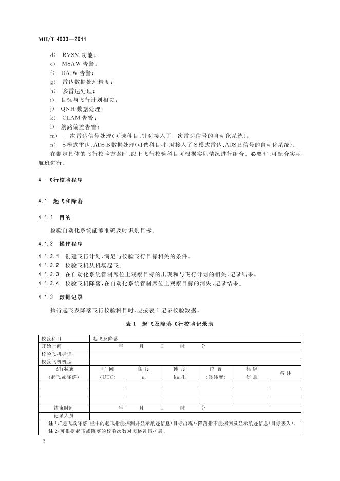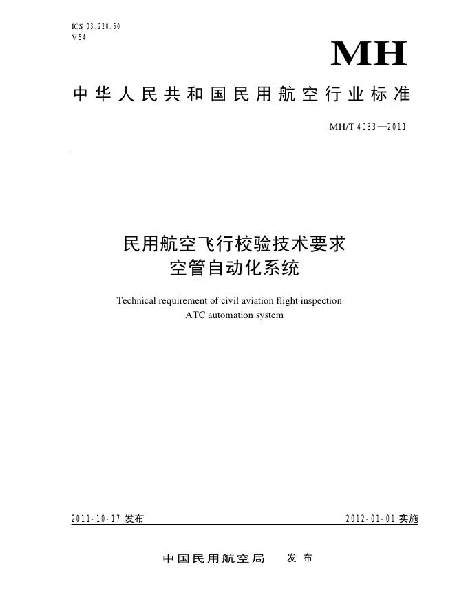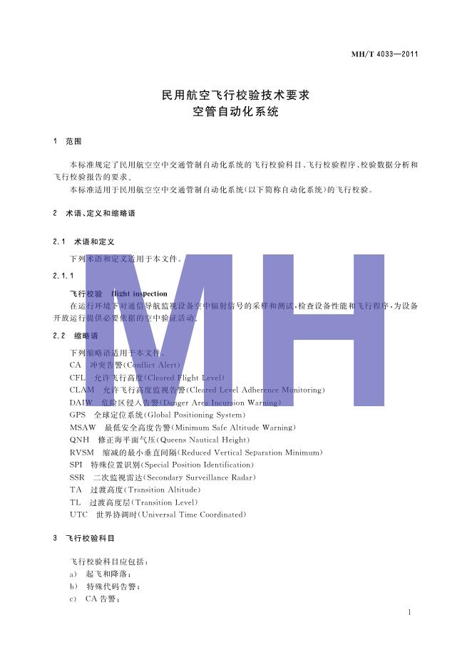 MH/T 4033-2011 民用航空飞行校验技术要求 空管自动化系统