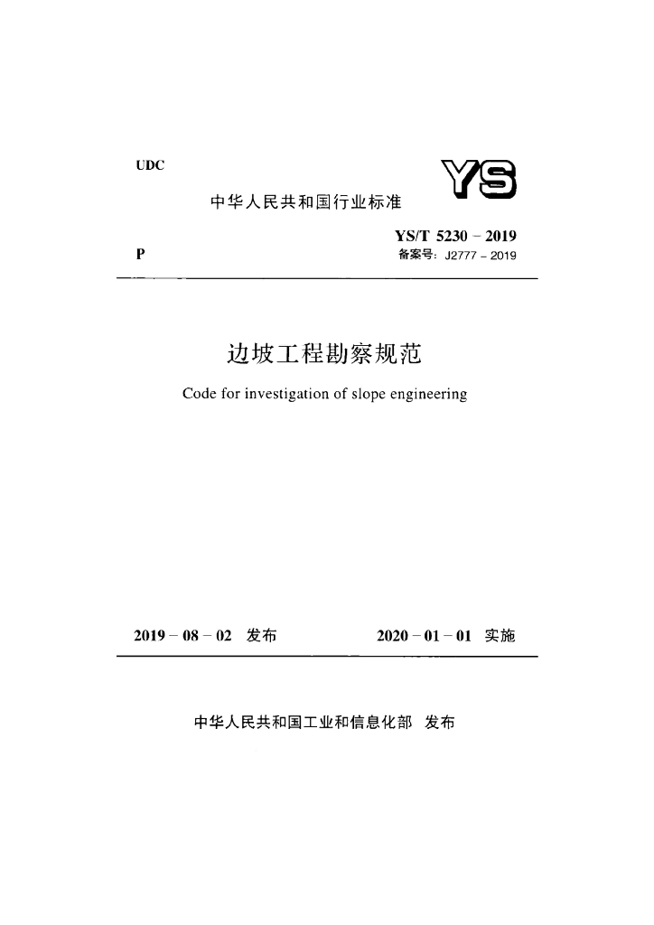 YS/T 5230-2019 边坡工程勘察规范