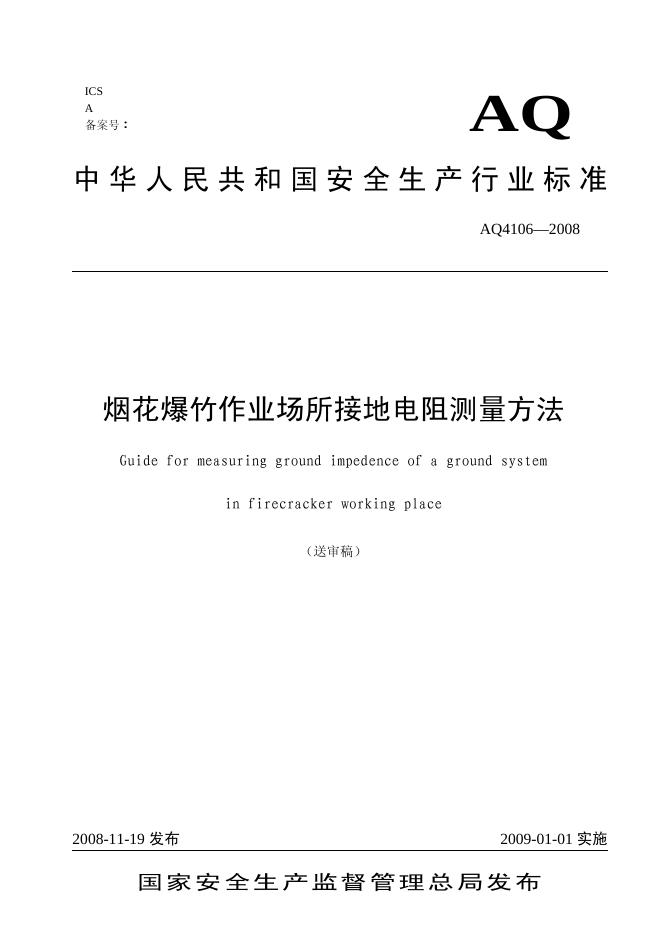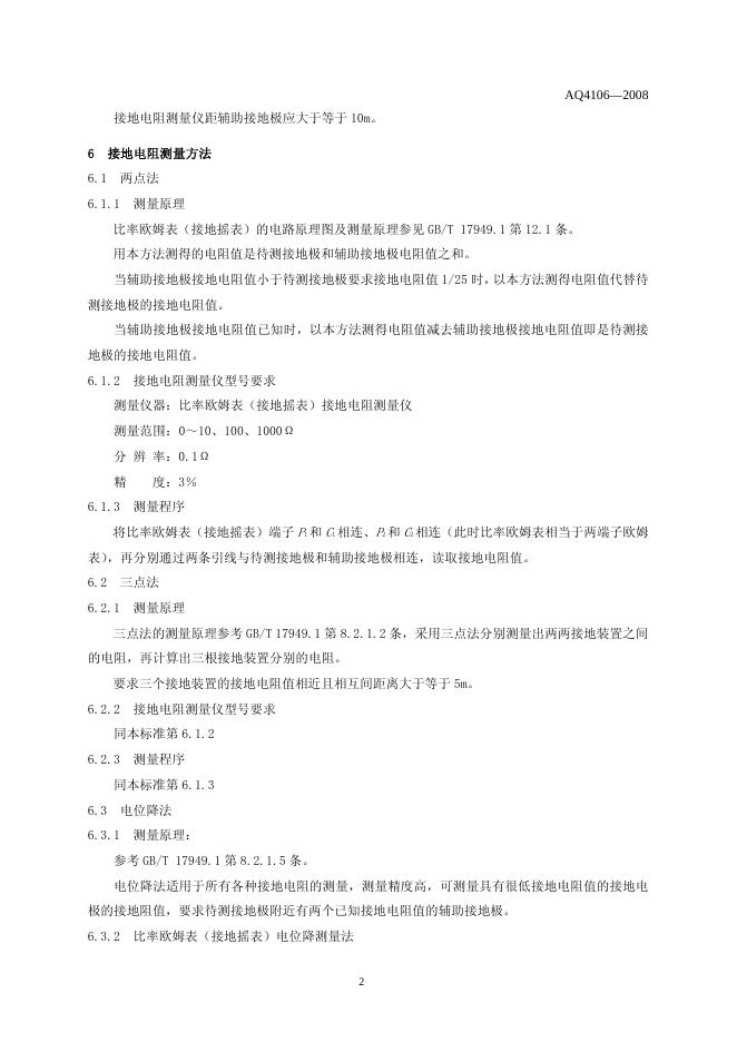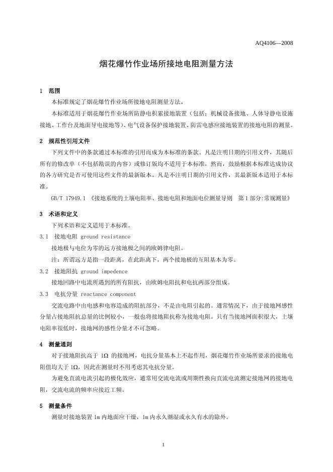 AQ/T 4106-2008 烟花爆竹作业场所接地电阻测量方法