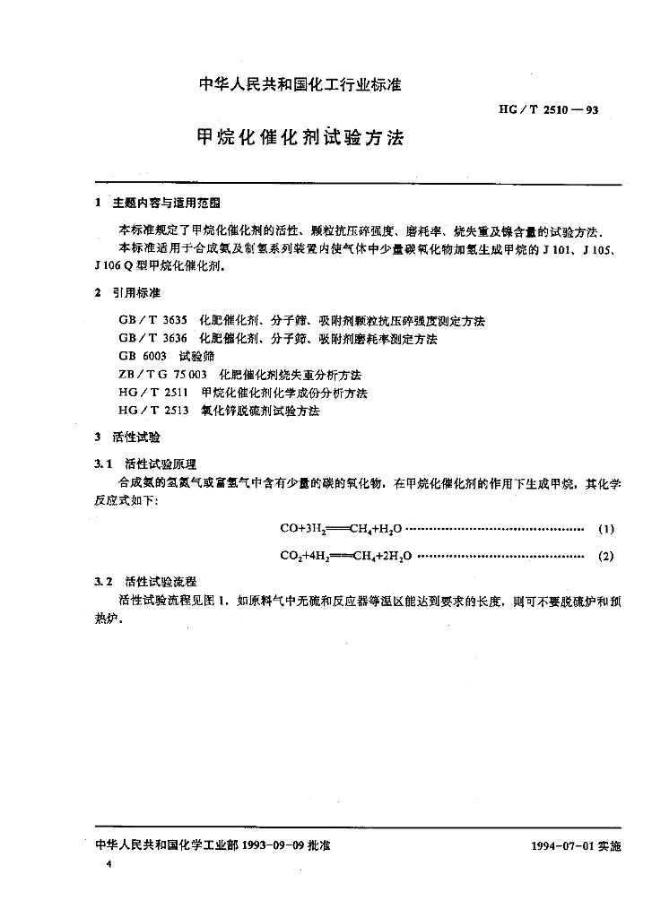 HG/T 2510-1993 甲烷化催化剂试验方法