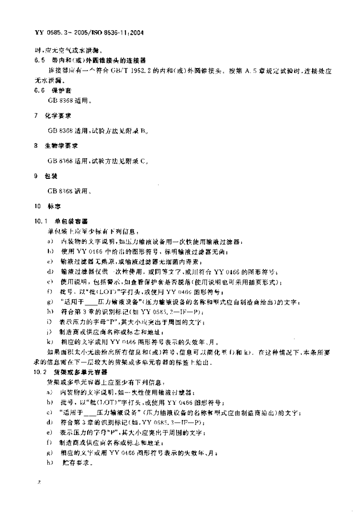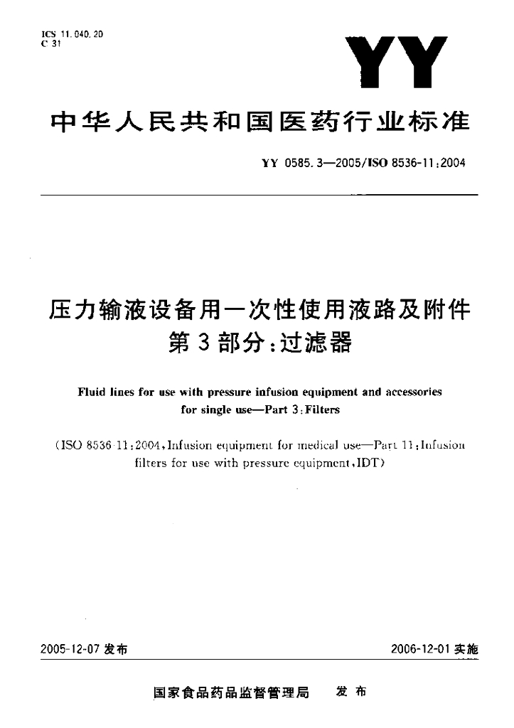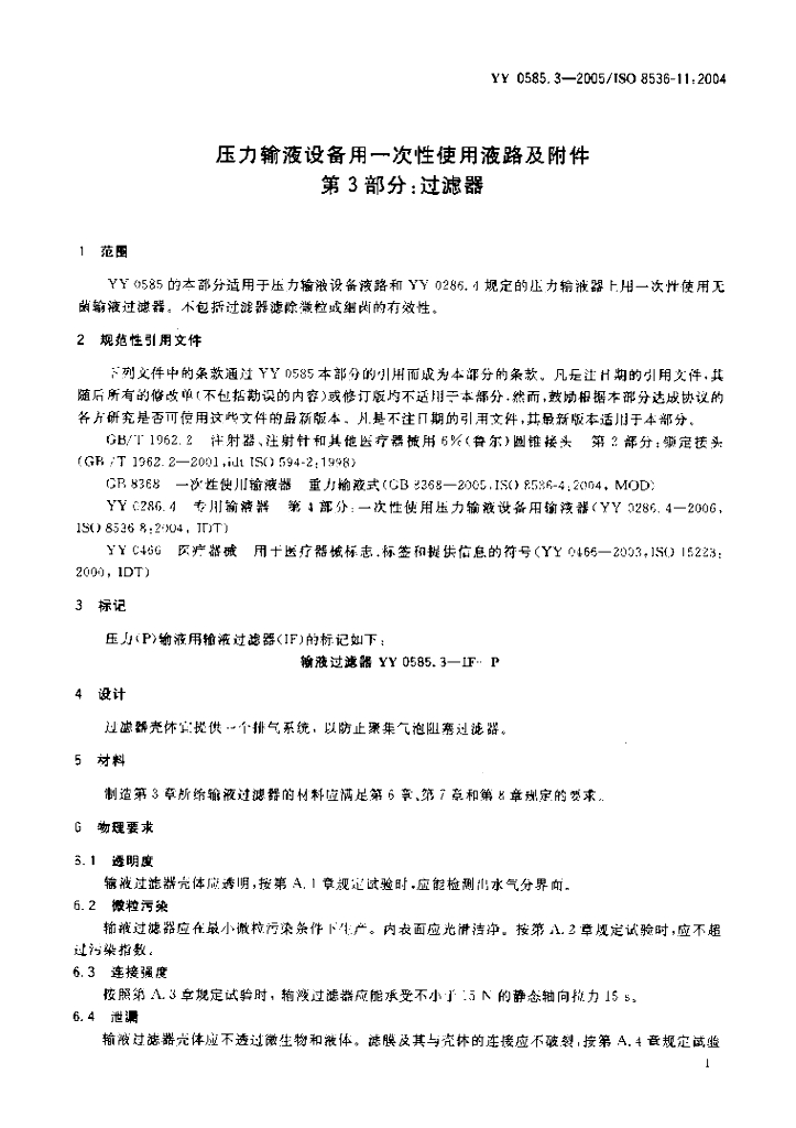 YY 0585.3-2005 压力输液设备用一次性使用液路及附件 第3部分:过滤器
