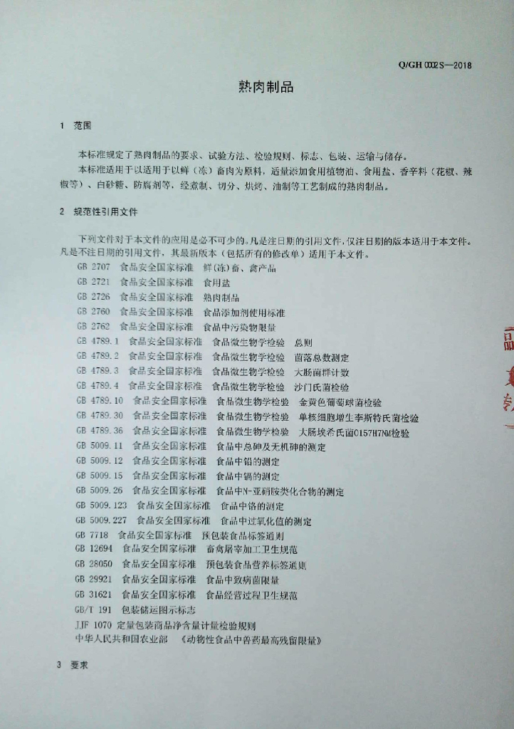 Q/GH 0002S-2018 熟肉制品