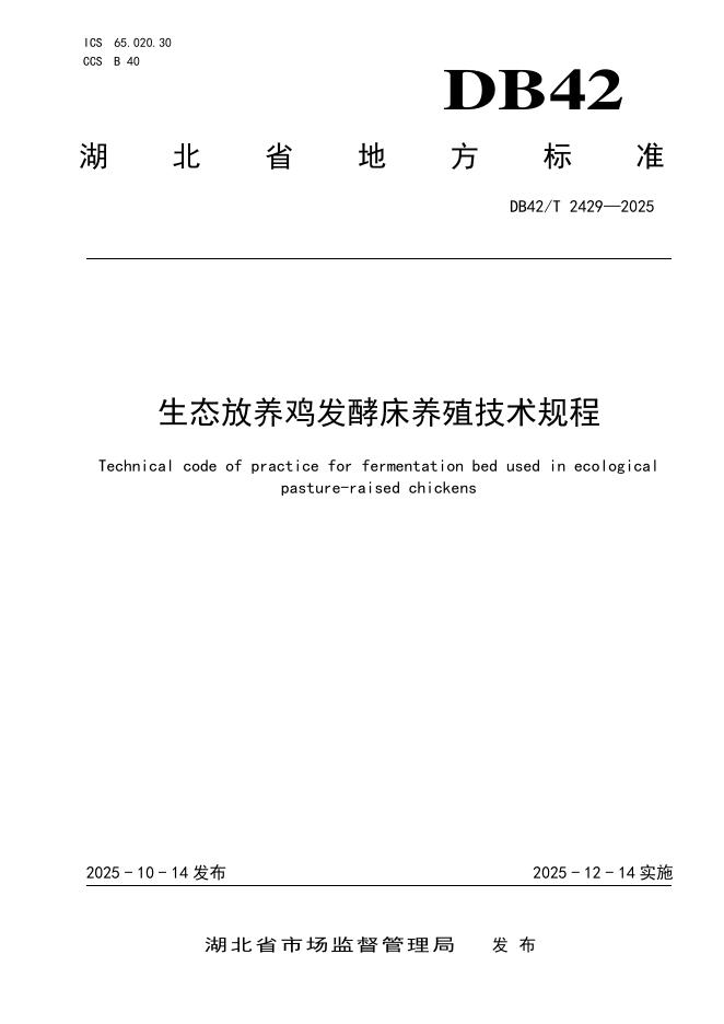 DB42/T 2429-2025 生态放养鸡发酵床养殖技术规程