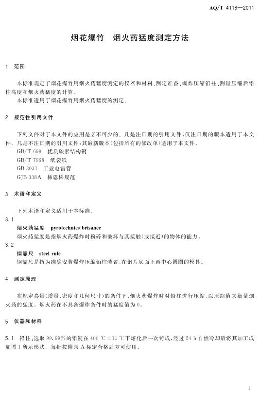 AQ/T 4118-2011 烟花爆竹 烟火药猛度测定方法