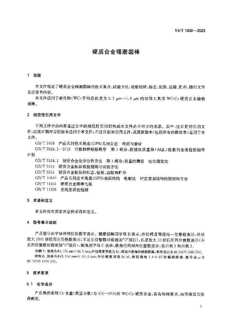 YS/T 1608-2023 硬质合金精磨圆棒