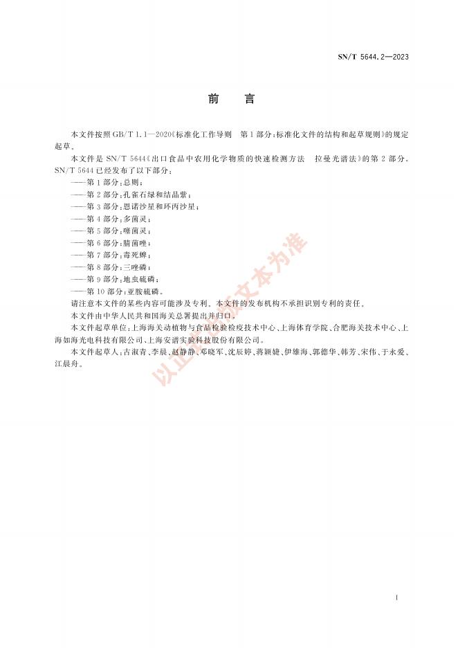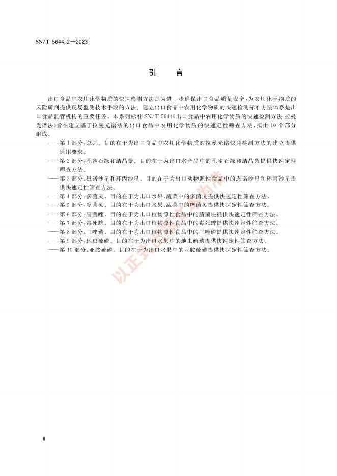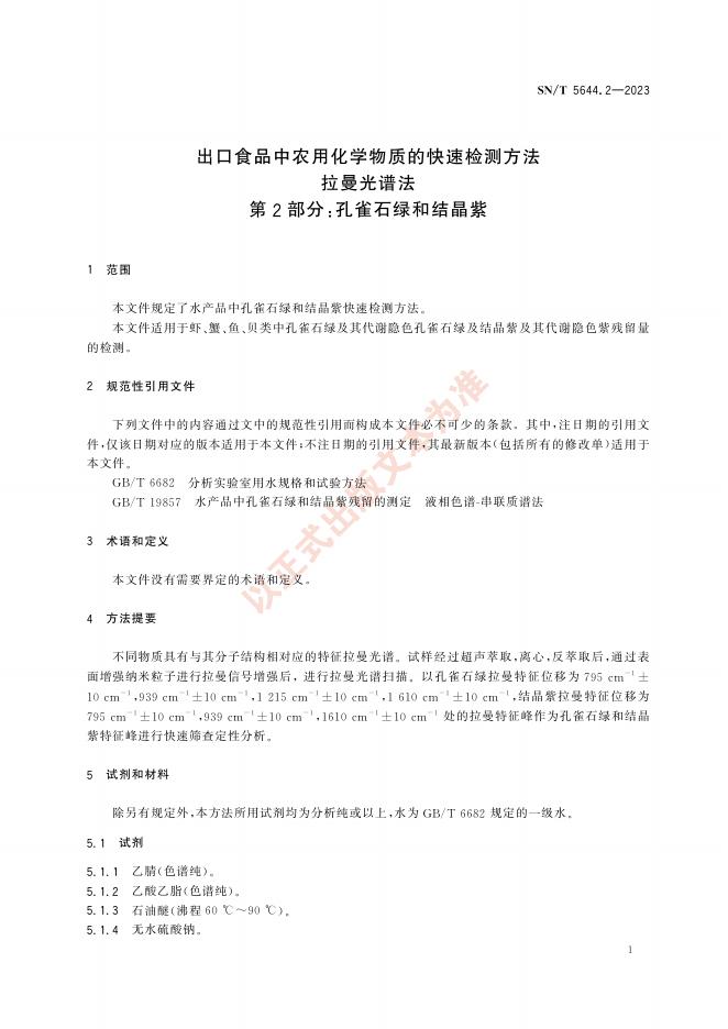 SN/T 5644.2-2023 出口食品中农用化学物质的快速检测方法 拉曼光谱法 第2部分:孔雀石绿和结晶紫