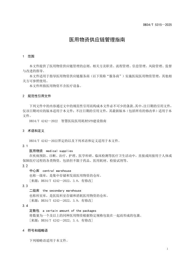 DB34/T 5315-2025 医用物资供应链管理指南