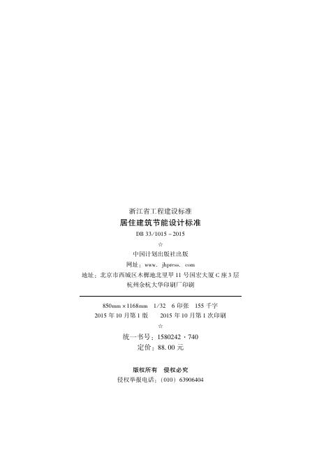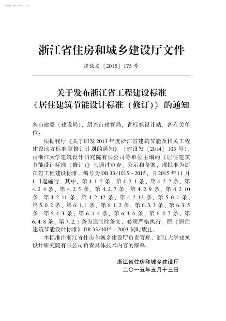 DB33/ 1015-2015 浙江省居住建筑节能设计标准