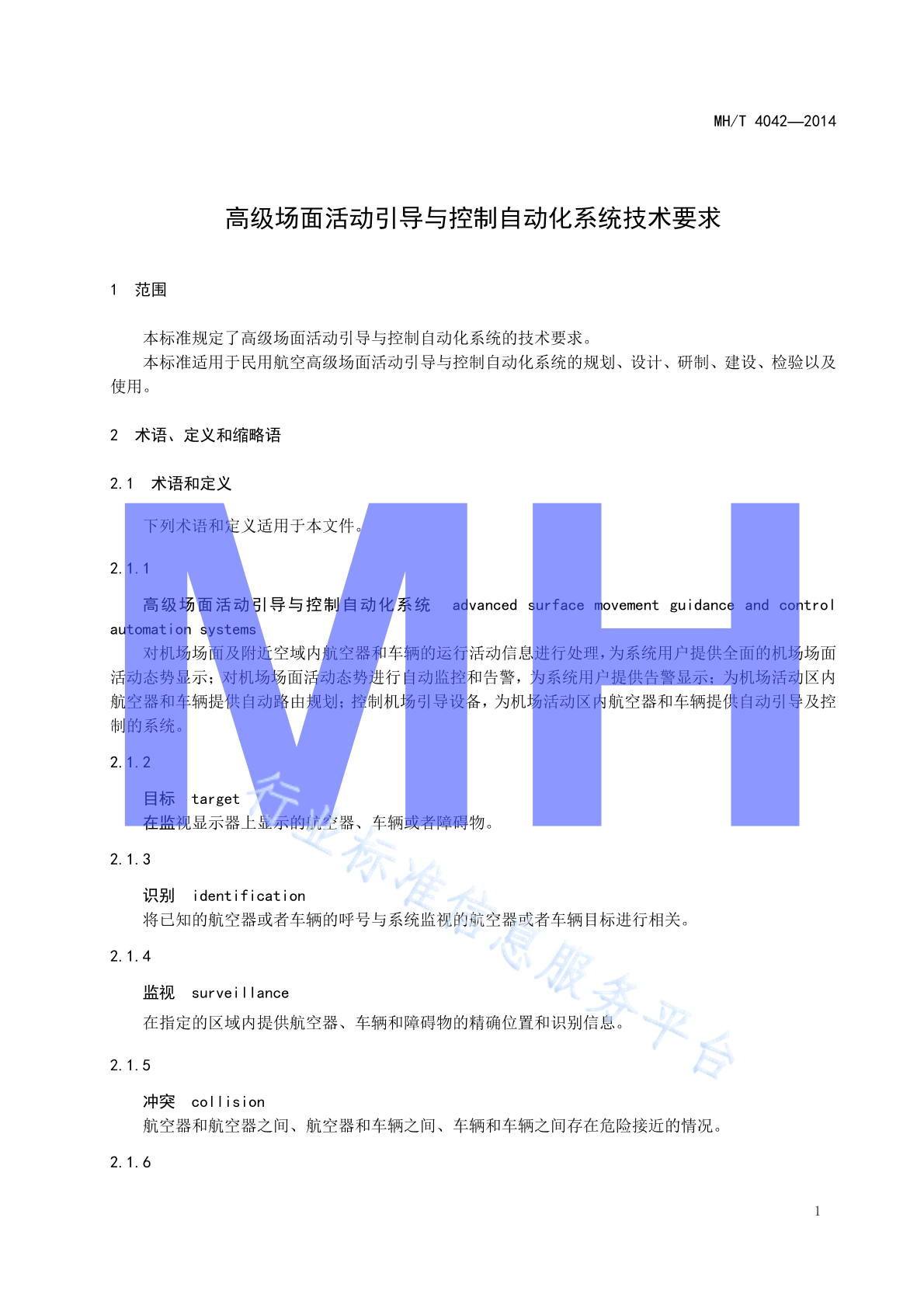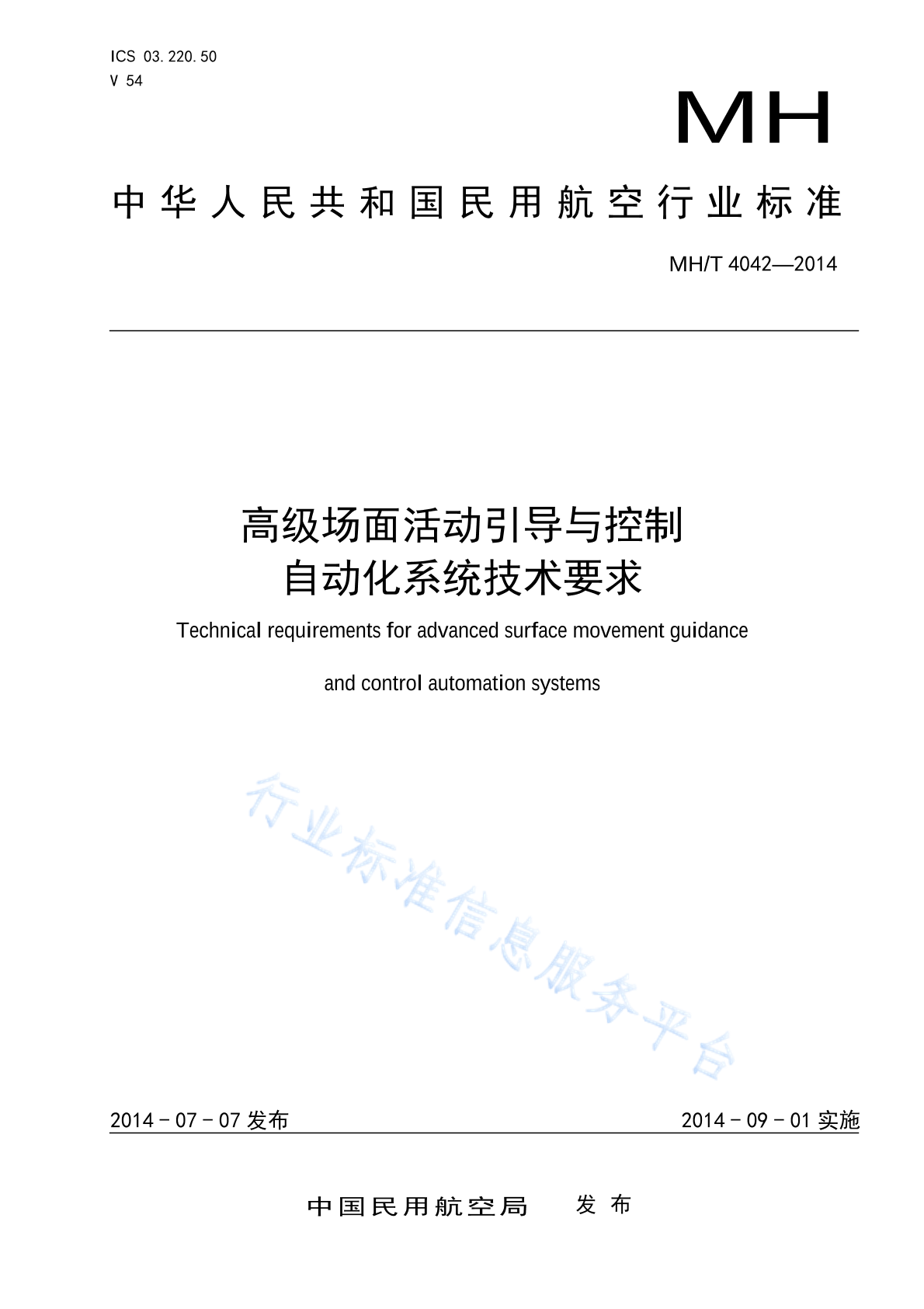 MH/T 4042-2014 高级场面活动引导与控制自动化系统技术要求
