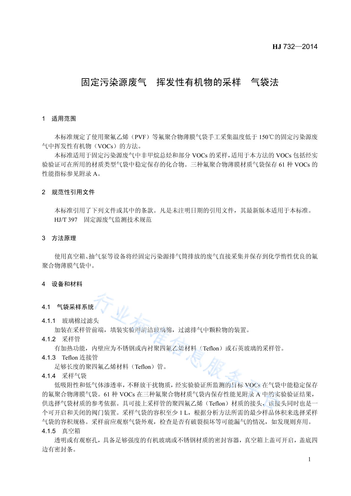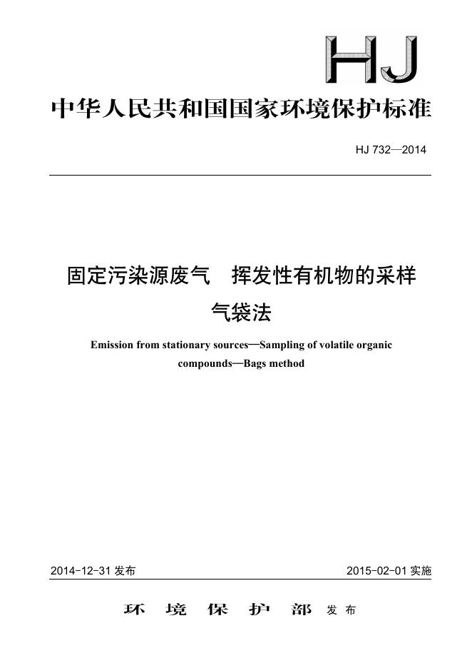 HJ 732-2014 固定污染源废气 挥发性有机物的采样 气袋法