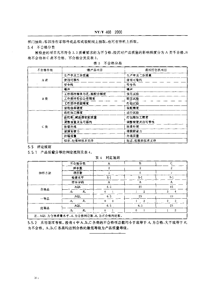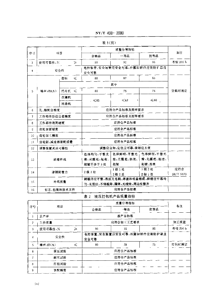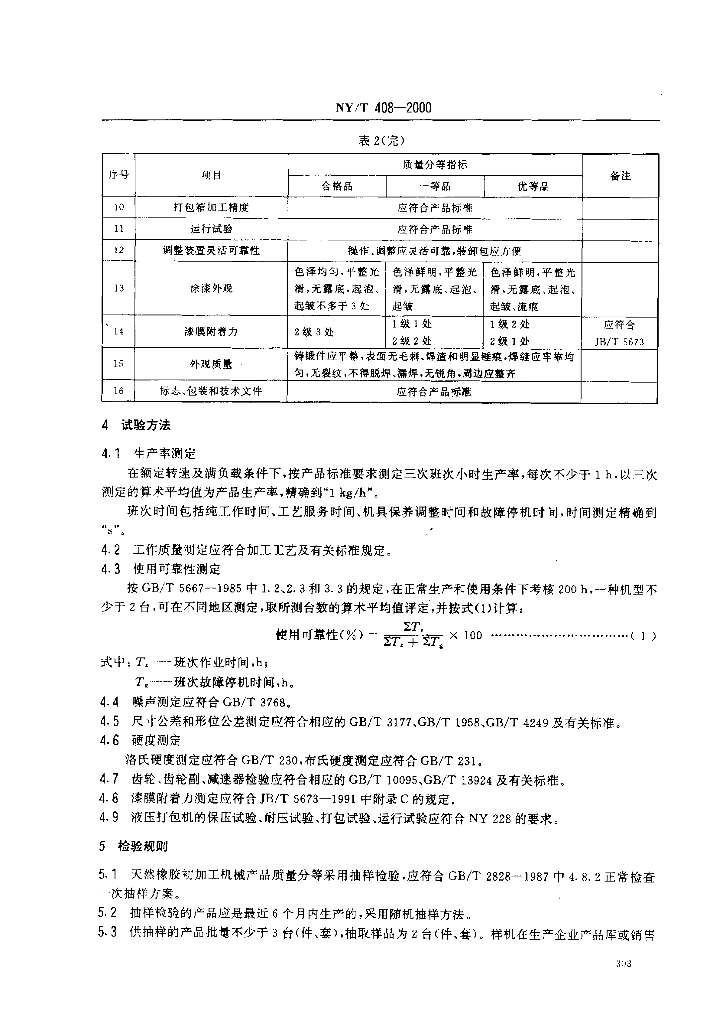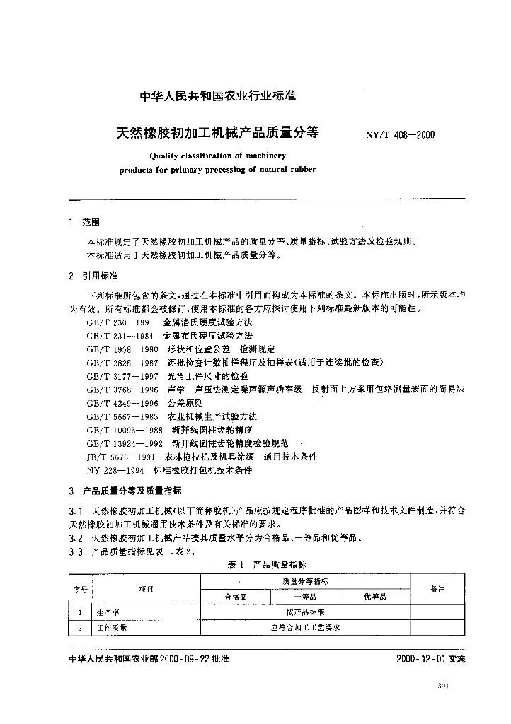 NY/T 408-2000 天然橡胶初加工机械产品质量分等