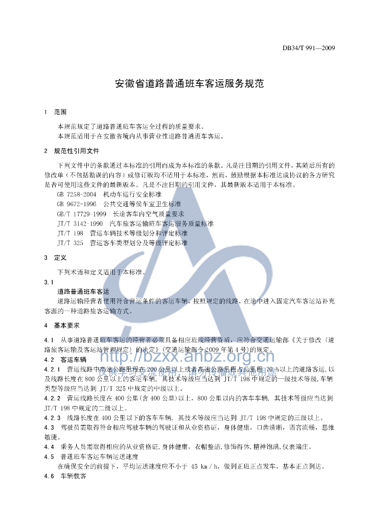 DB34/T 991-2009 安徽省道路普通班车客运服务规范