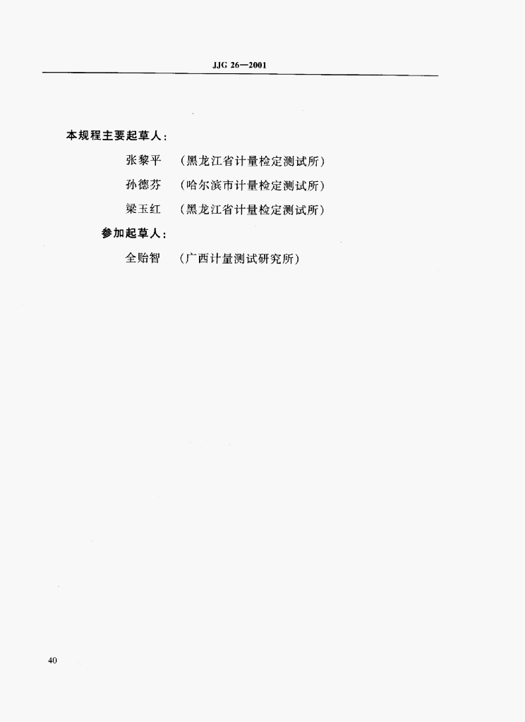 张黎平(黑龙江省计量检定测试所)、孙德芬(哈尔滨市计量检定测试所)、梁玉红(黑龙江省计量检定测试所)、全贻智(广西计量测试研究所)