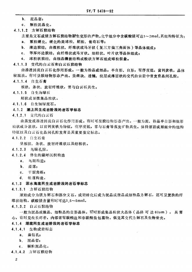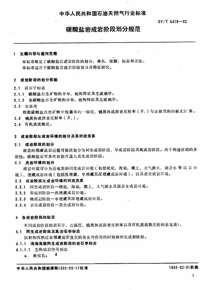 SY/T 5478-1992 碳酸盐成岩阶段划分规范