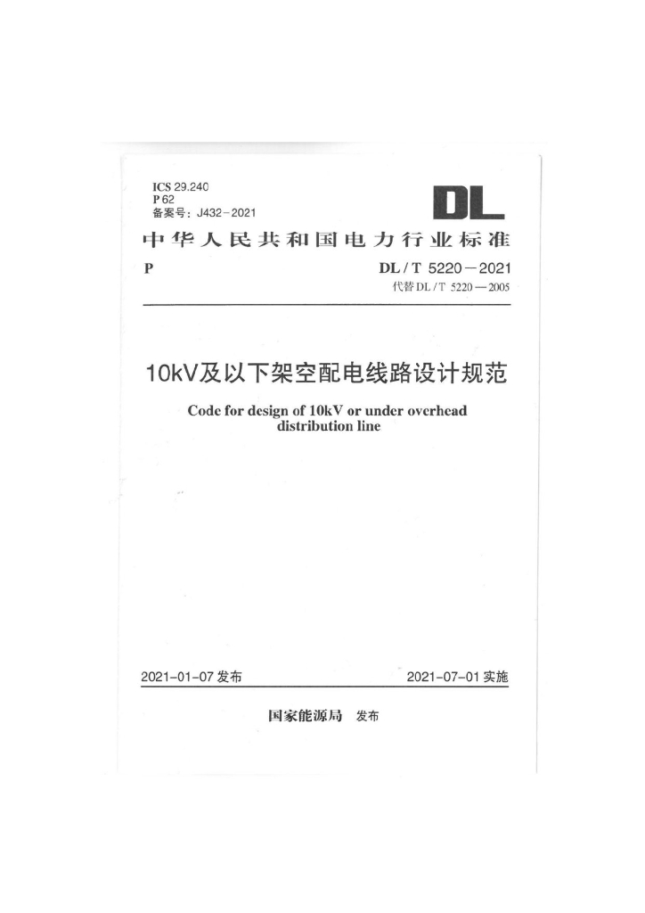 DL/T 5220-2021 10kV及以下架空配电线路设计规范