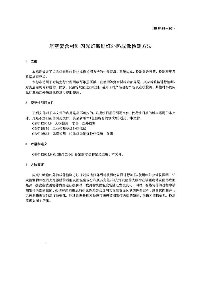 HB 8428-2014 航空复合材料闪光灯激励红外热成像检测方法
