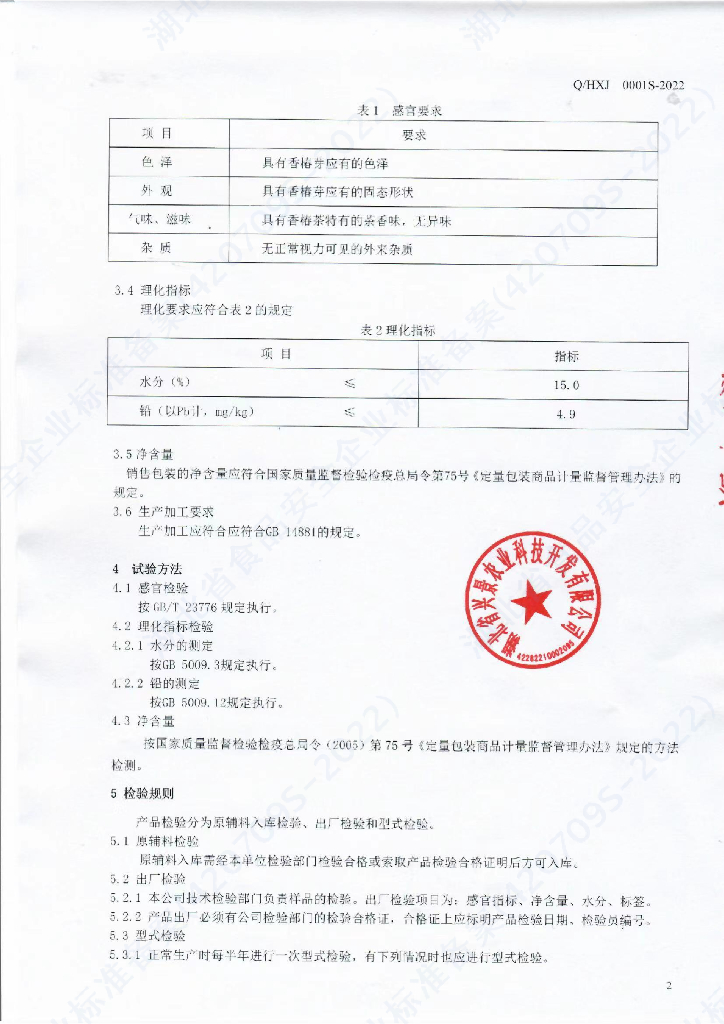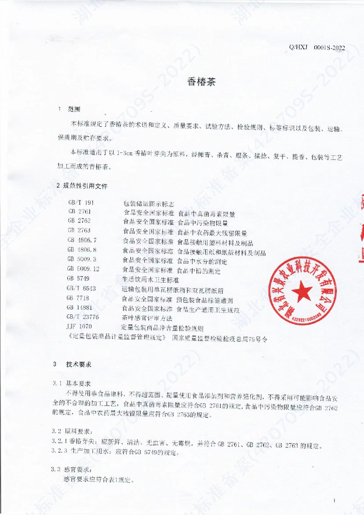 Q/HXJ 0001S-2022 香椿茶