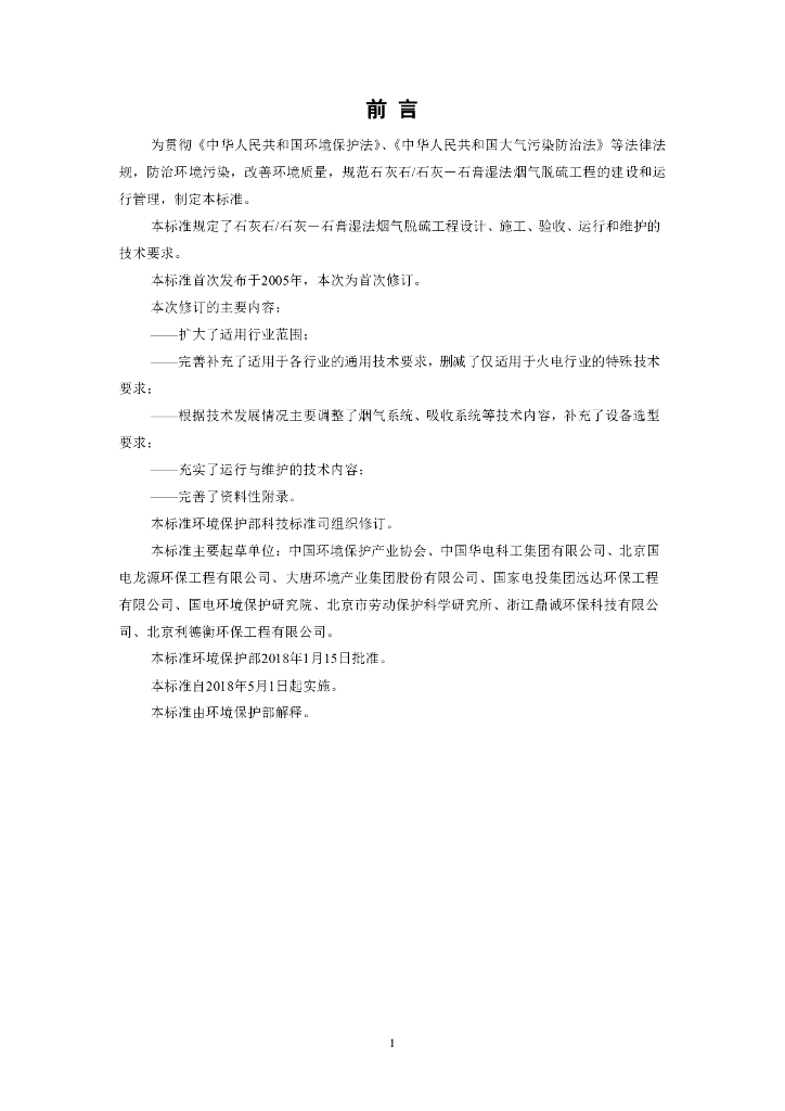 HJ 179-2018 石灰石/石灰-石膏湿法烟气脱硫工程通用技术规范