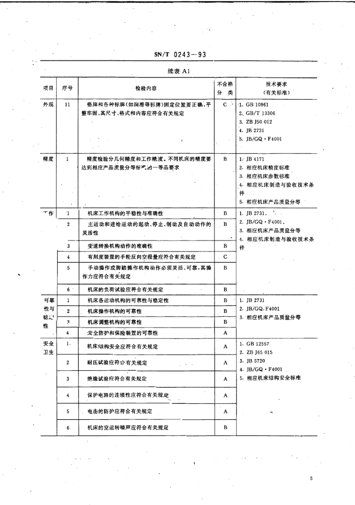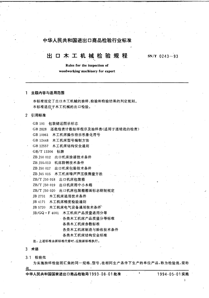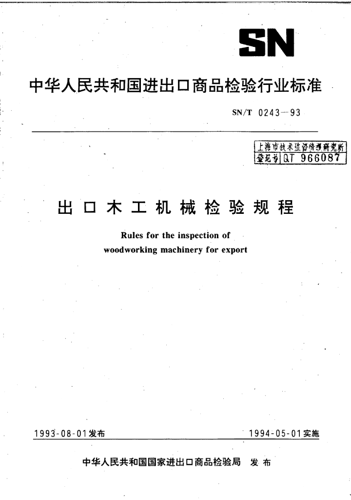 SN/T 0243-1993 出口木工机械检验规程