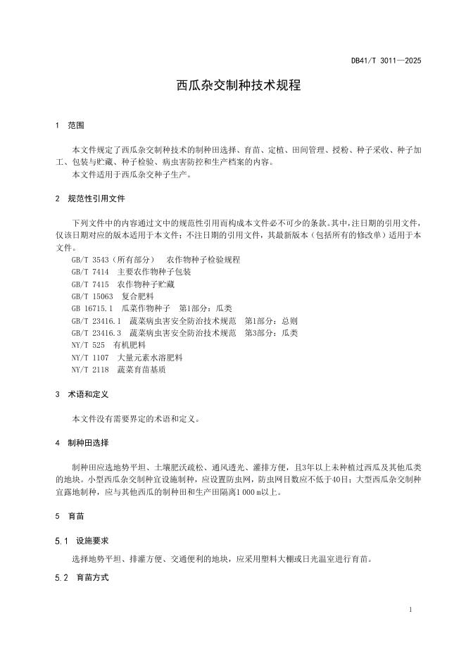 DB41/T 3011-2025 西瓜杂交制种技术规程