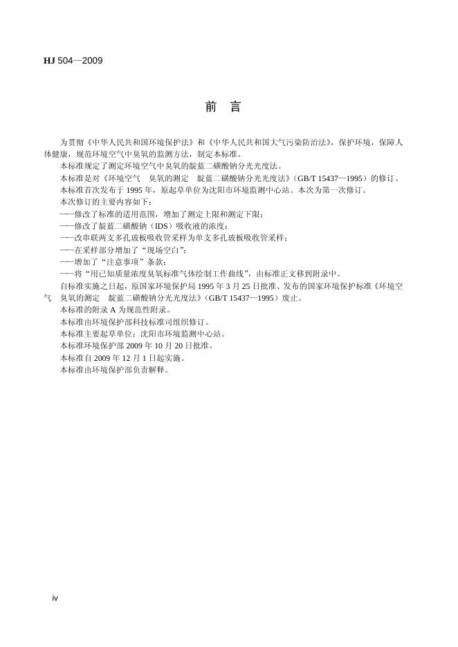 HJ 504-2009 环境空气 臭氧的测定 靛蓝二磺酸钠分光光度法