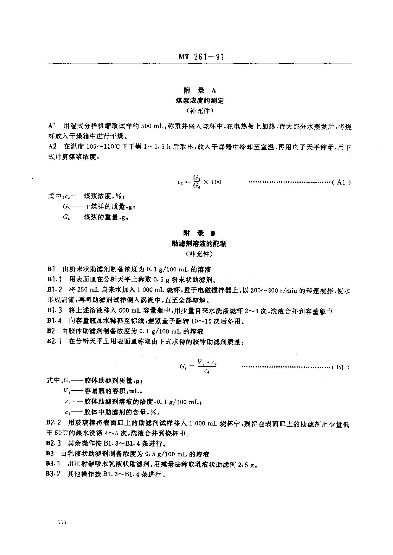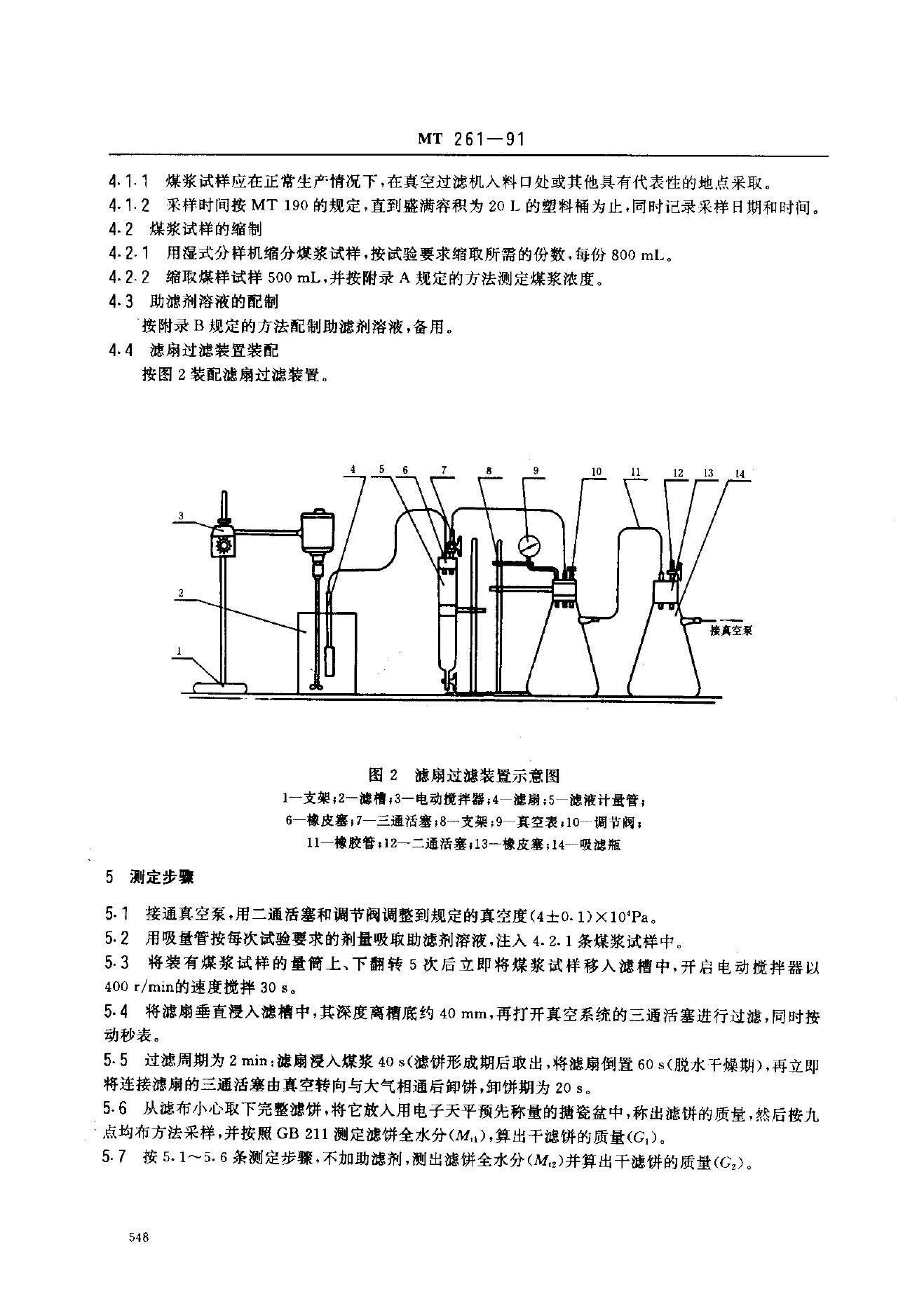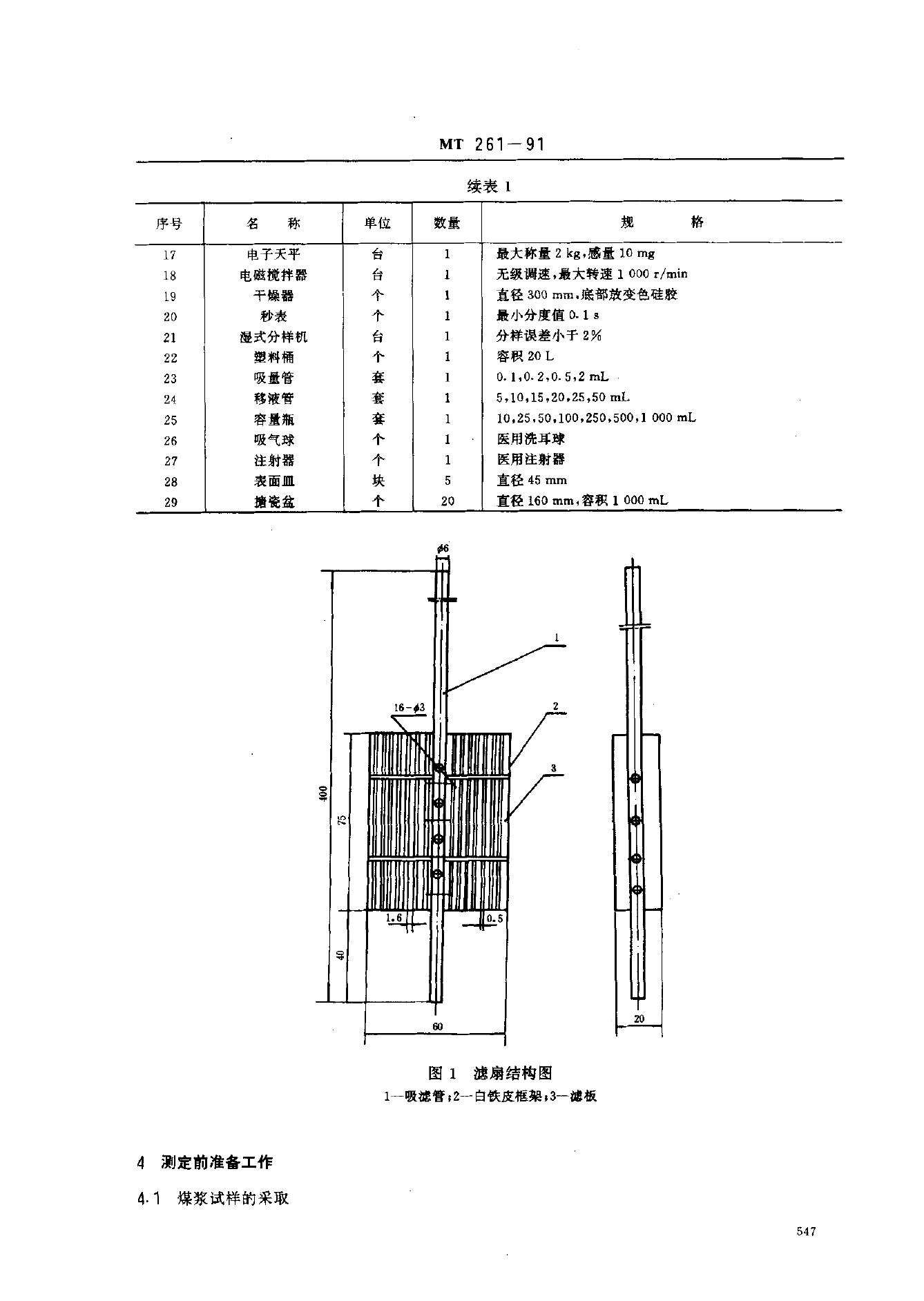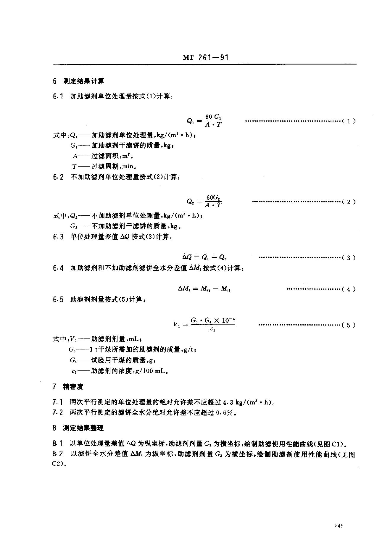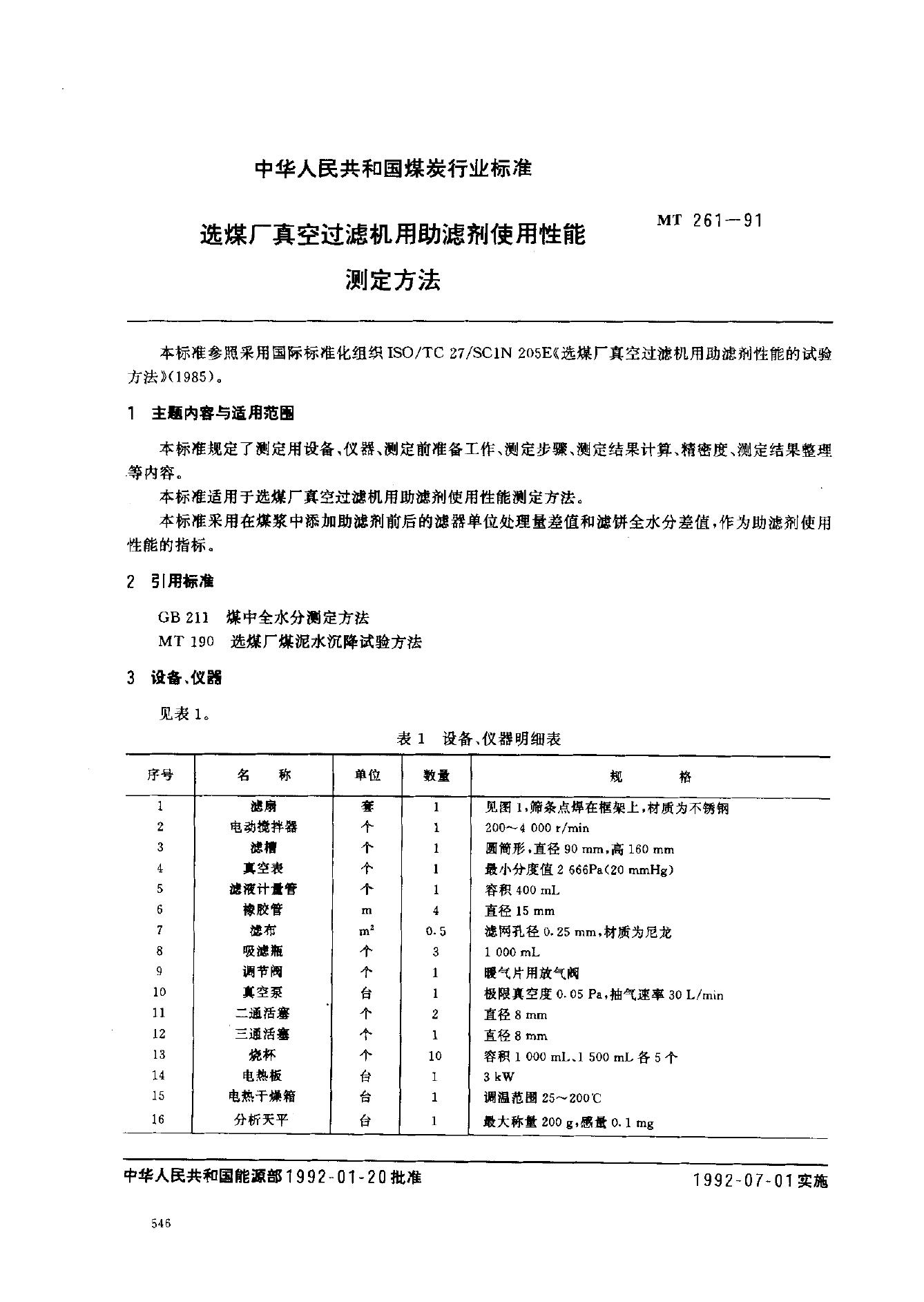 MT/T 261-1991 选煤厂真空过滤机用助滤剂使用性能测定方法