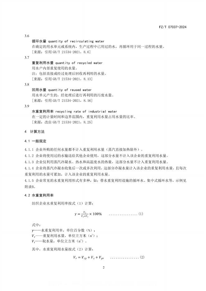FZ/T 07037-2024 纺织企业水重复利用率计算方法