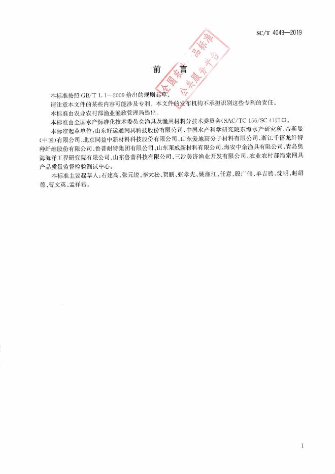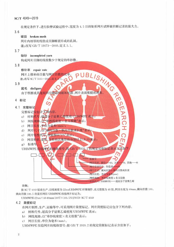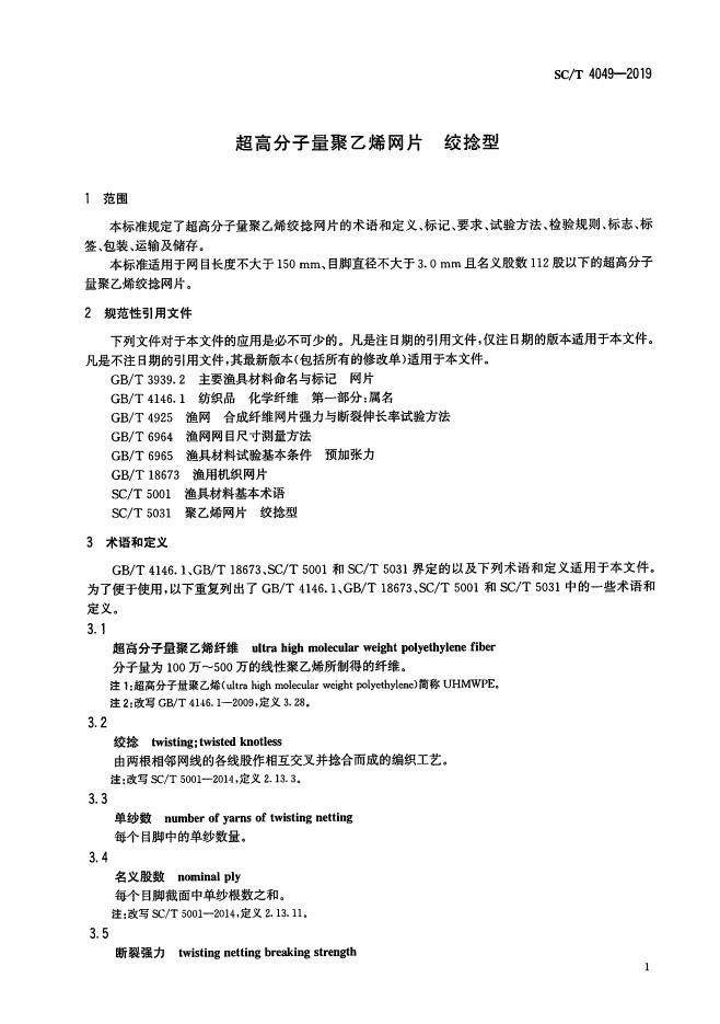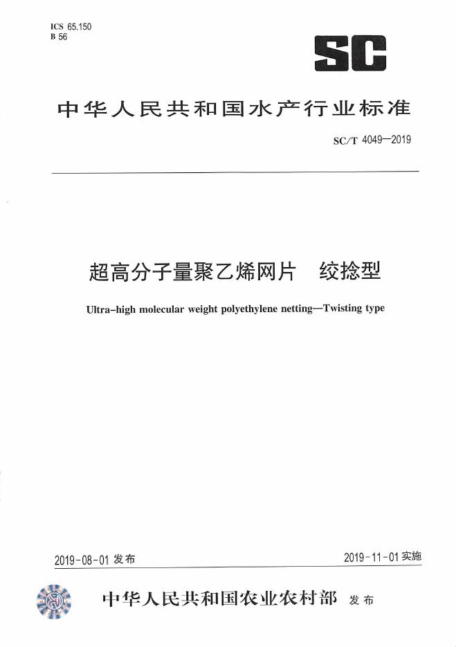 SC/T 4049-2019 超高分子量聚乙烯网片 绞捻型