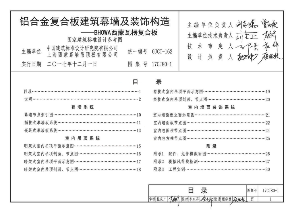 17CJ80-1 铝合金复合板建筑幕墙及装饰构造——BHOWA西蒙瓦楞复合板参考图集