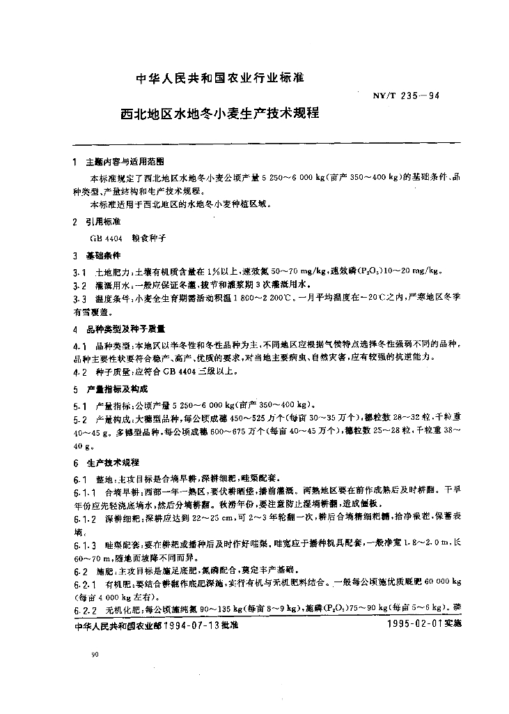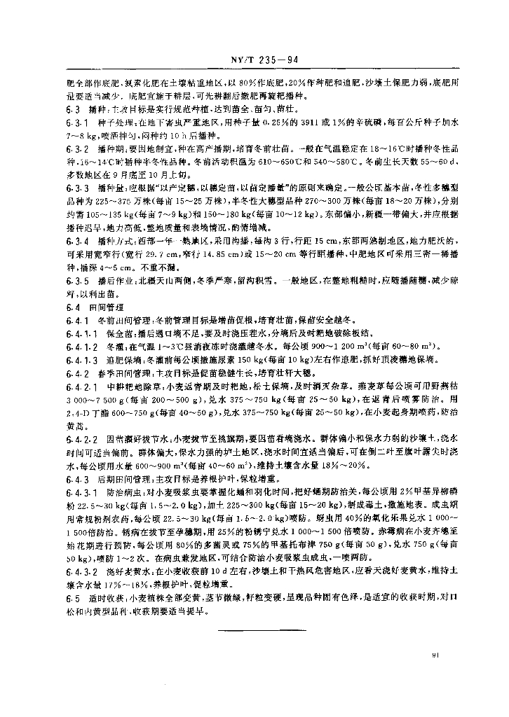 NY/T 235-1994 西北地区水地冬小麦生产技术规程