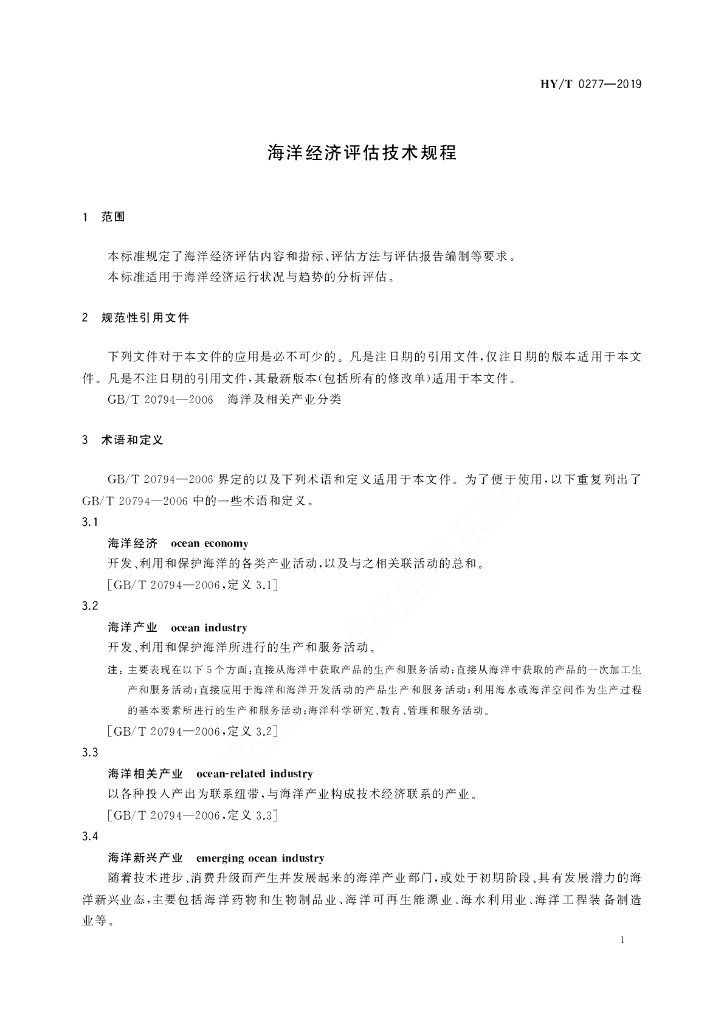 HY/T 0277-2019 海洋经济评估技术规程