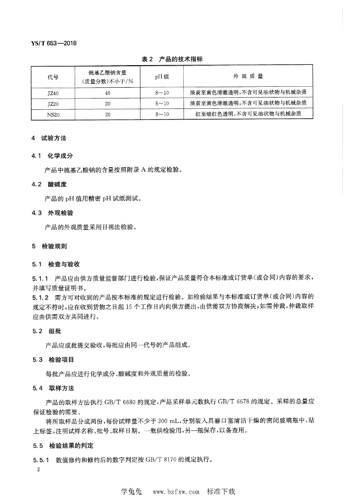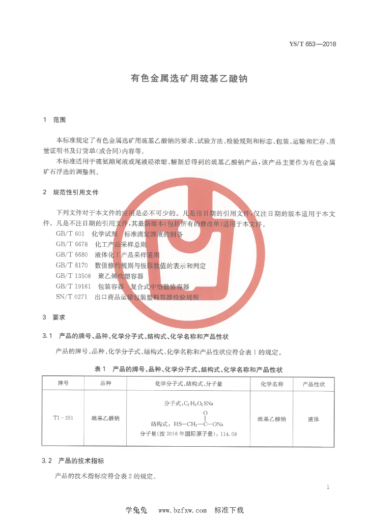YS/T 653-2018 有色金属选矿用巯基乙酸钠