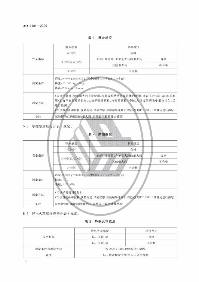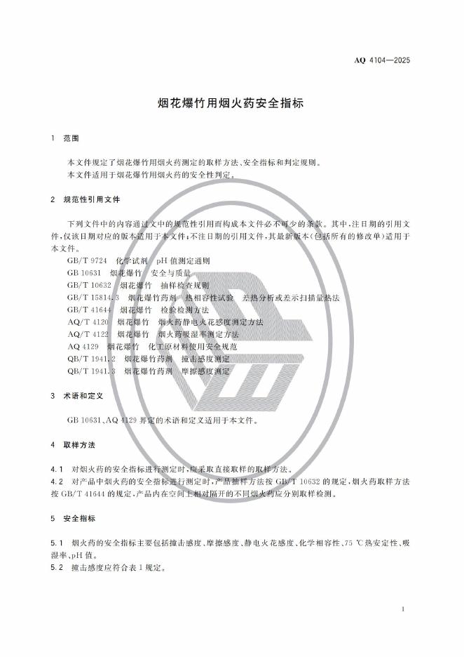 AQ 4104-2025 烟花爆竹用烟火药安全指标