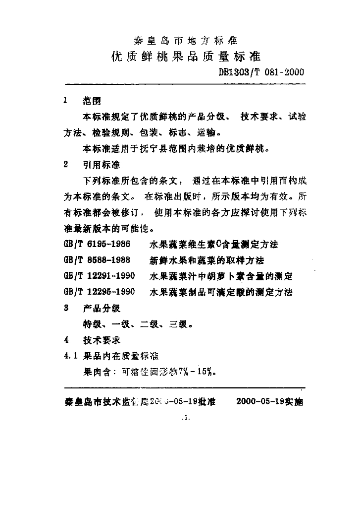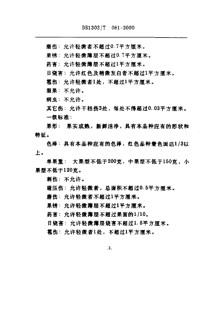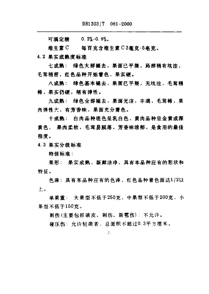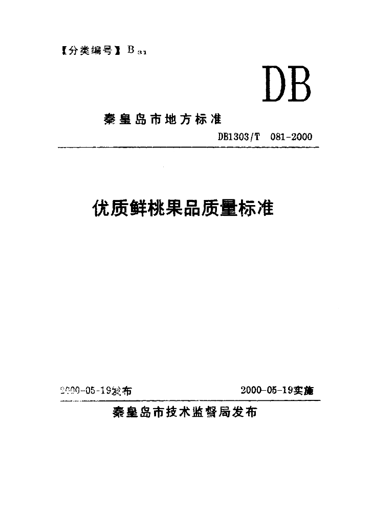 DB1303/T 081-2000 优质鲜桃果品质量标准