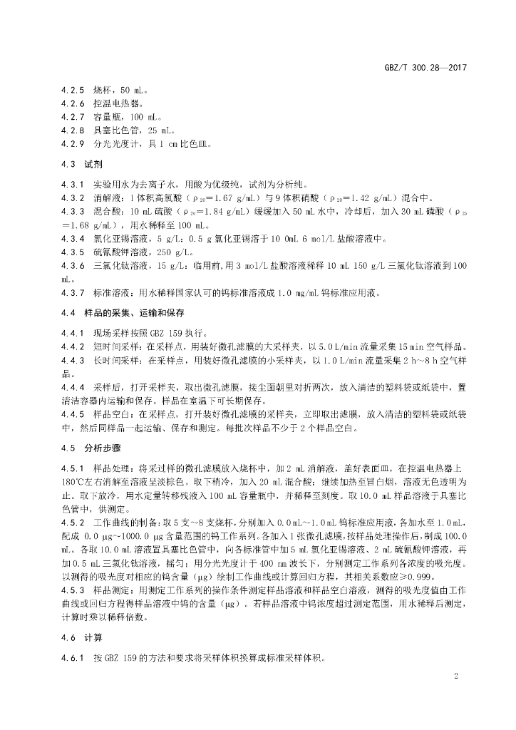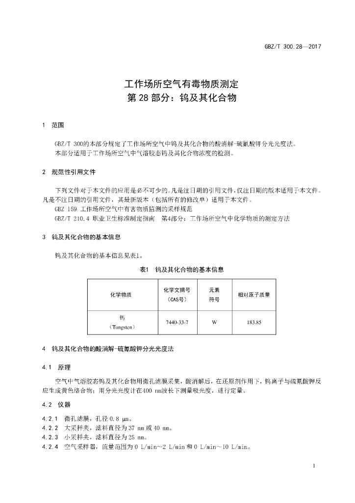 GBZ/T 300.28-2017 工作场所空气有毒物质测定 第28部分:钨及其化合物