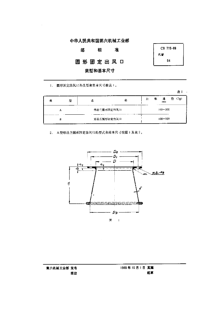 CB 715-1968 圆形固定出风口类型和基本尺寸
