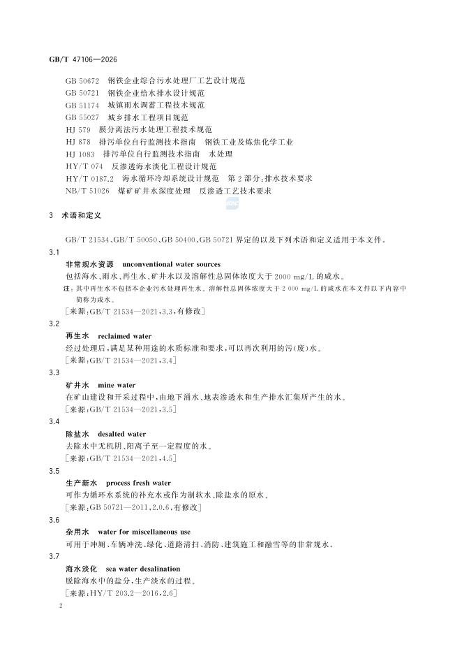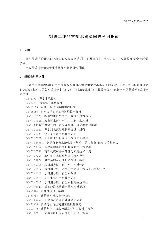 GB/T 47106-2026 钢铁工业非常规水资源回收利用指南