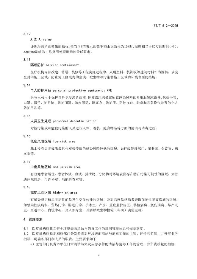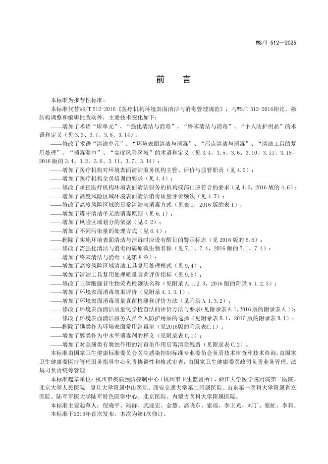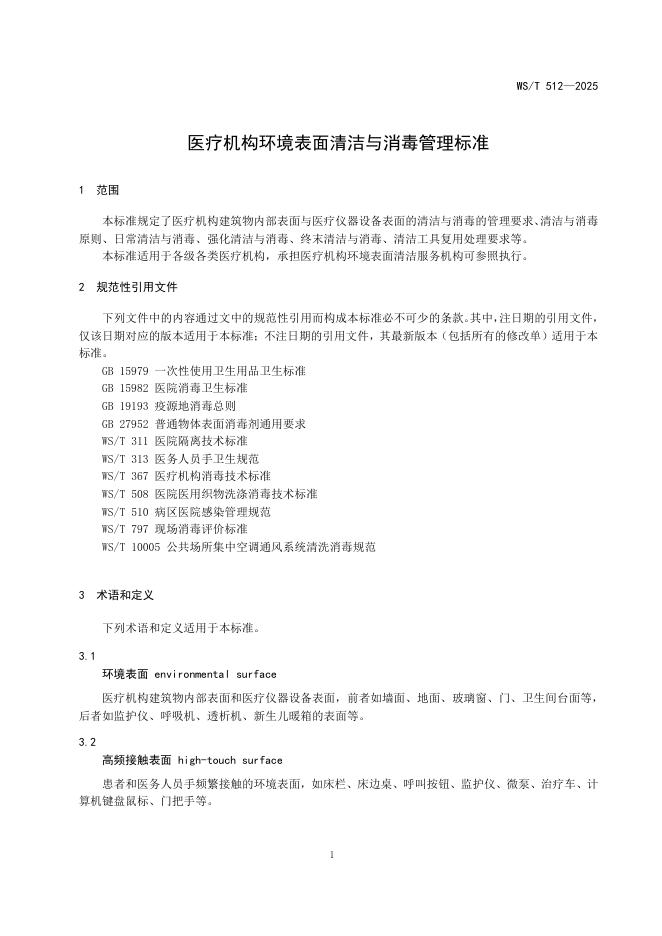 WS/T 512-2025 医疗机构环境表面清洁与消毒管理标准