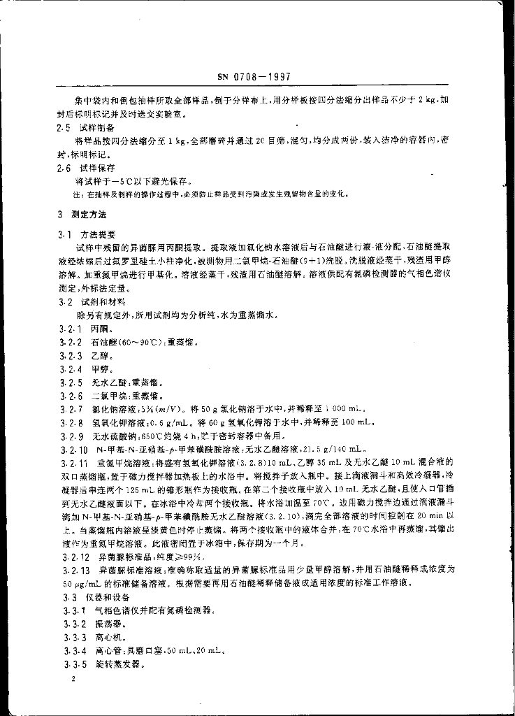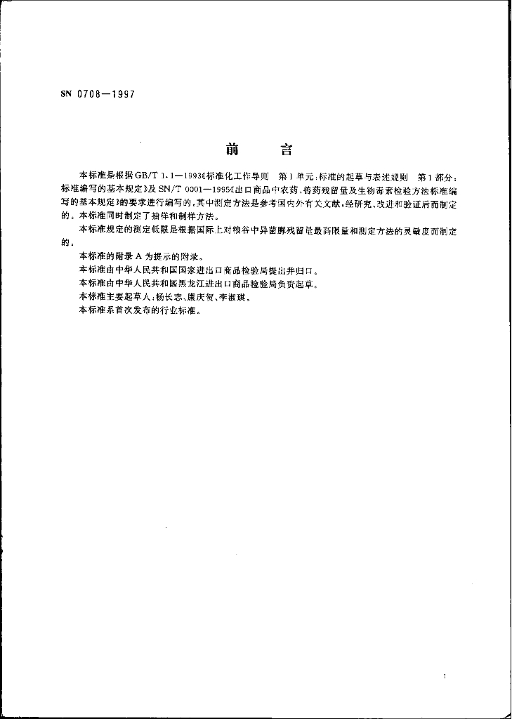 SN 0708-1997 出口粮谷中异菌脲残留量检验方法