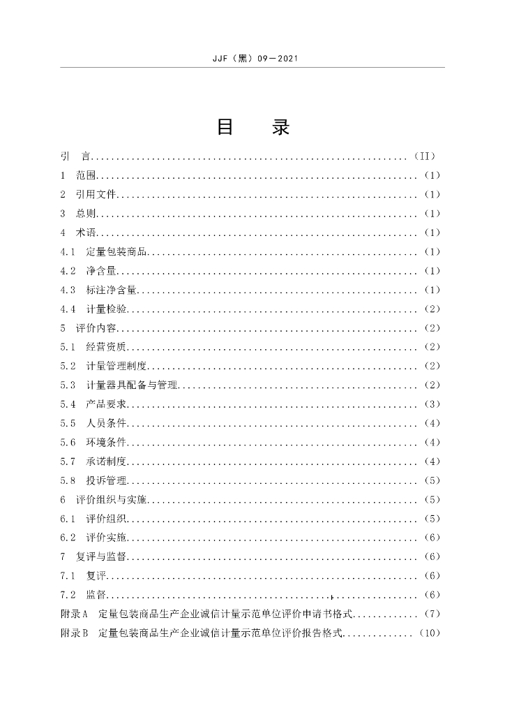 JJF(黑)09-2021 定量包装商品生产企业诚信计量示范单位评价规范